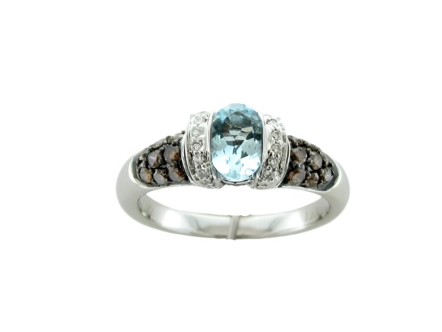 LeVian Chocolatier Ring featuring 1/2 cts Sea Blue Aquamarine, 1/3 cts Chocolate Diamonds , 1/10 cts Vanilla Diamonds set in 14K White Gold