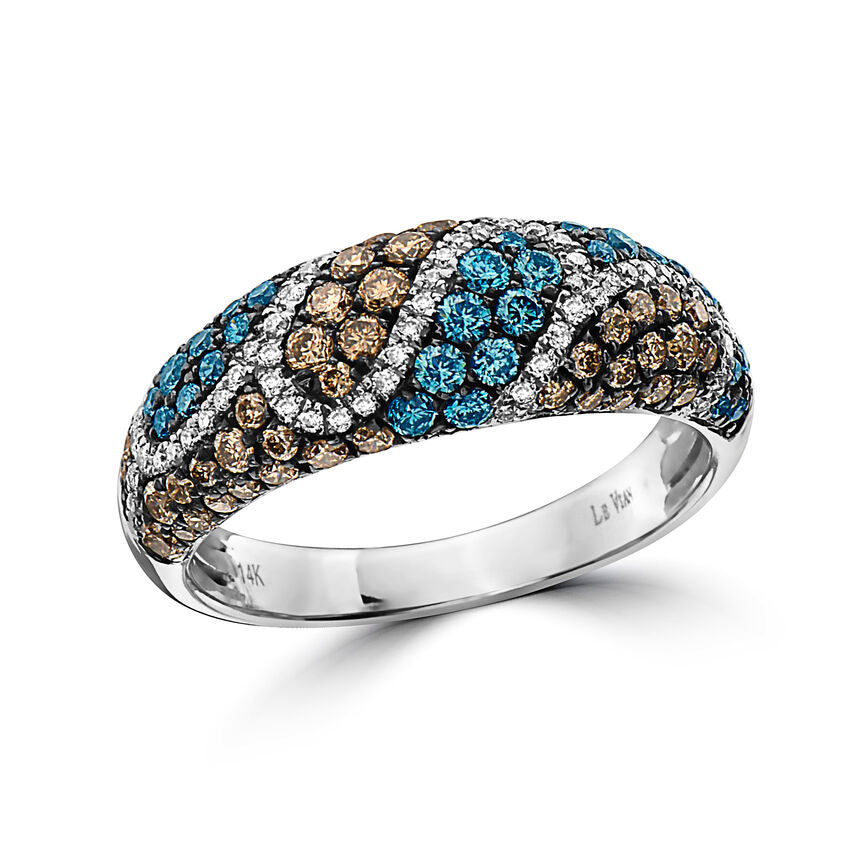 LeVian Exotics® Ring featuring 3/8 cts. Iced Blue Diamonds®, 3/8 cts. Chocolate Diamonds®, 1/5 cts. White Diamonds® set in 14K White Gold