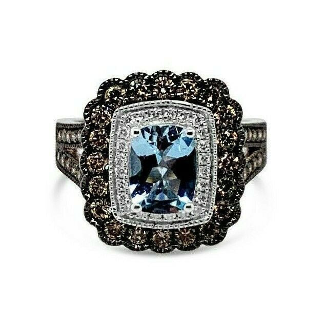 LeVian Chocolatier® Ring featuring 1 1/6 cts. Sea Blue Aquamarine®, 7/8 cts. Chocolate Diamonds®, 1/8 cts. White Diamonds® set in 14K White Gold
