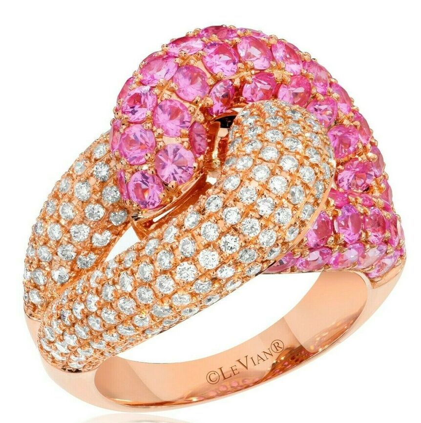 LeVian Ring featuring 3 5/8 cts. Bubble Gum Pink Sapphire™, 1 1/5 cts. White Diamonds® set in 14K Rose Gold