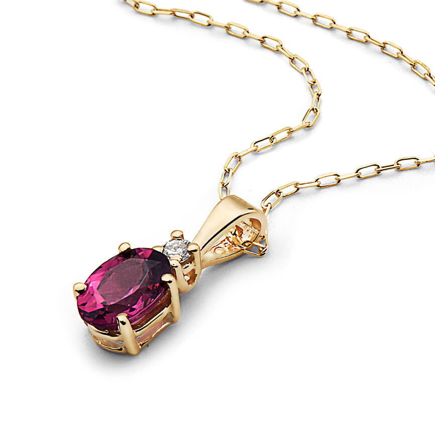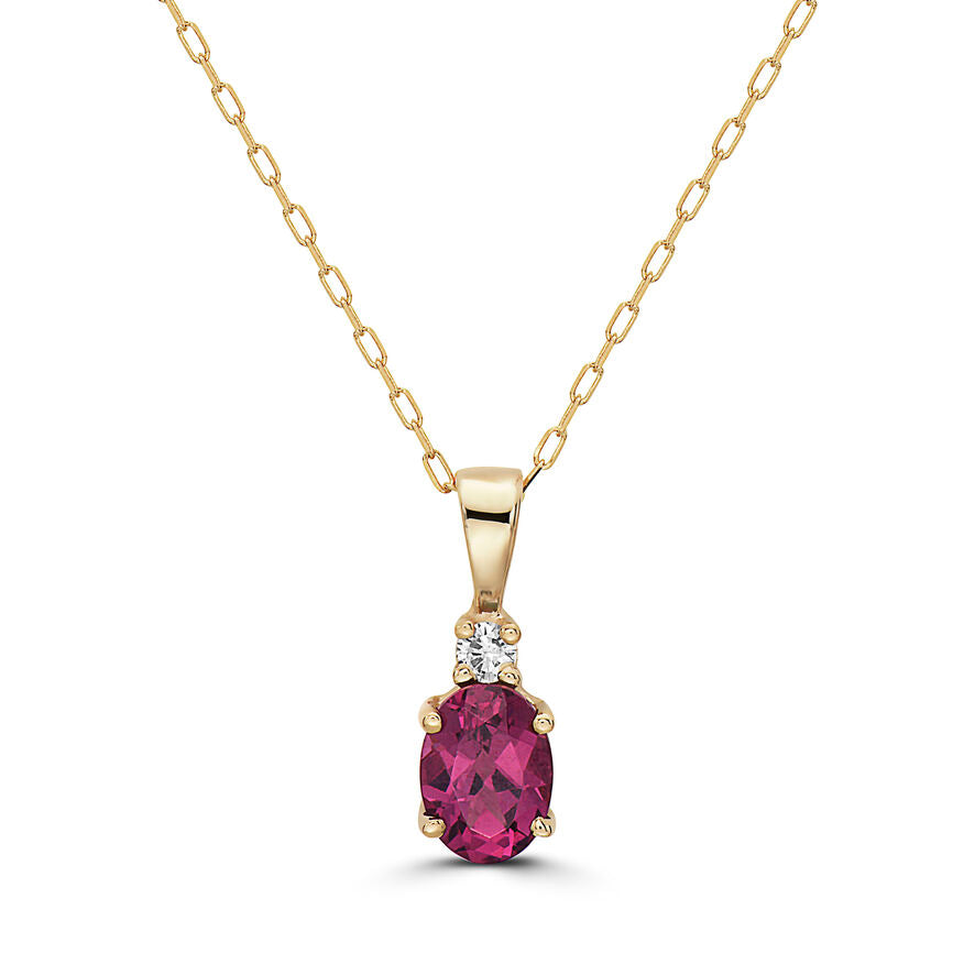 Birthstone Pendant featuring 7/8 cts. Raspberry Rhodolite®, 1/20 cts. Nude Diamonds™ set in 14K Yellow Gold